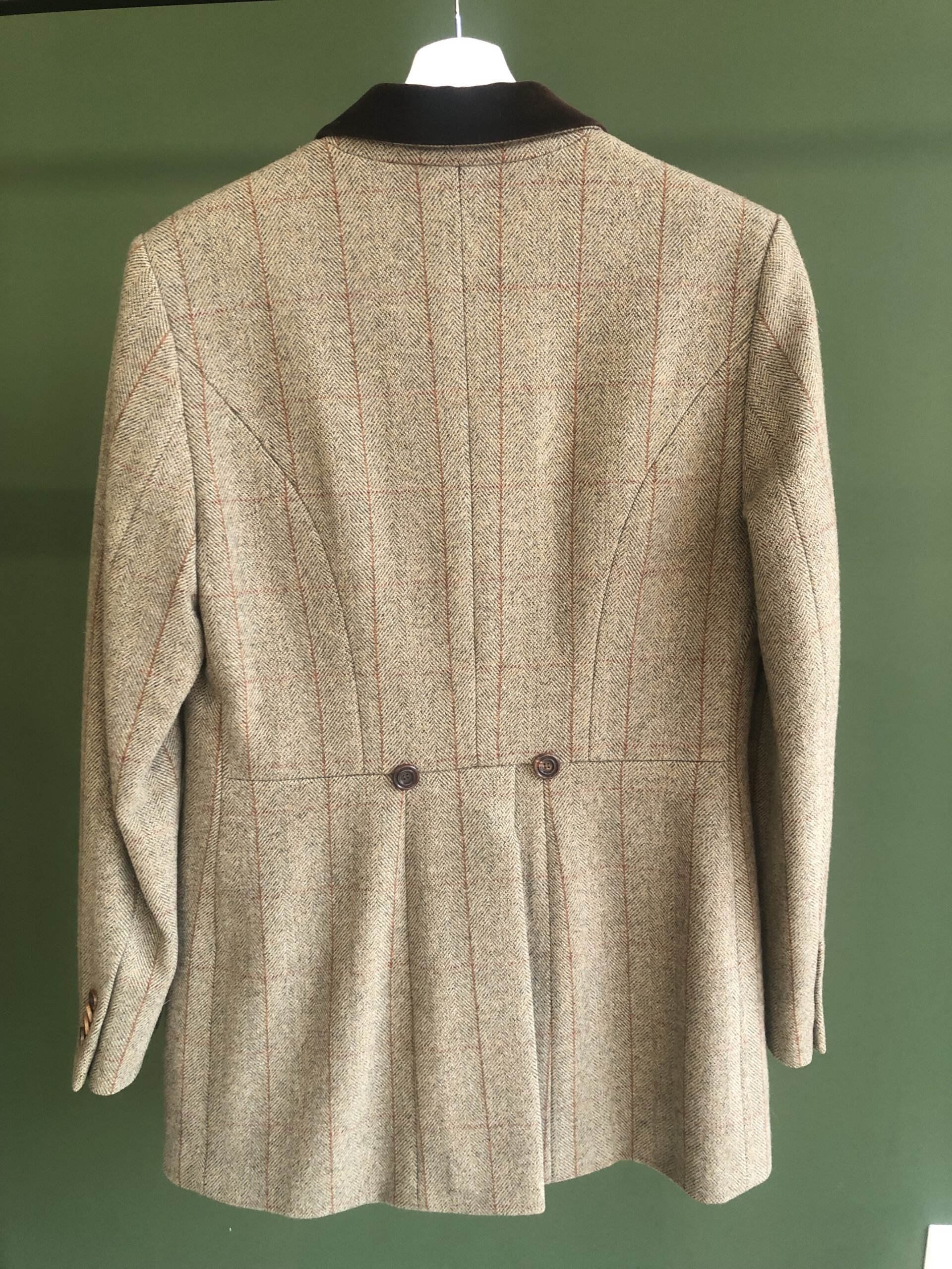 kleuren: groen met roestrood ‘vage’ ruit en 3 bruine knopen